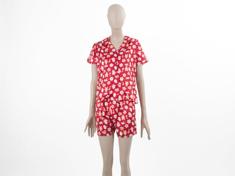 ROPA PIJAMA DAMA CONJUNTO MANGA CORTA + SHORT SEDA XMAS 25 ROJO PACK X2